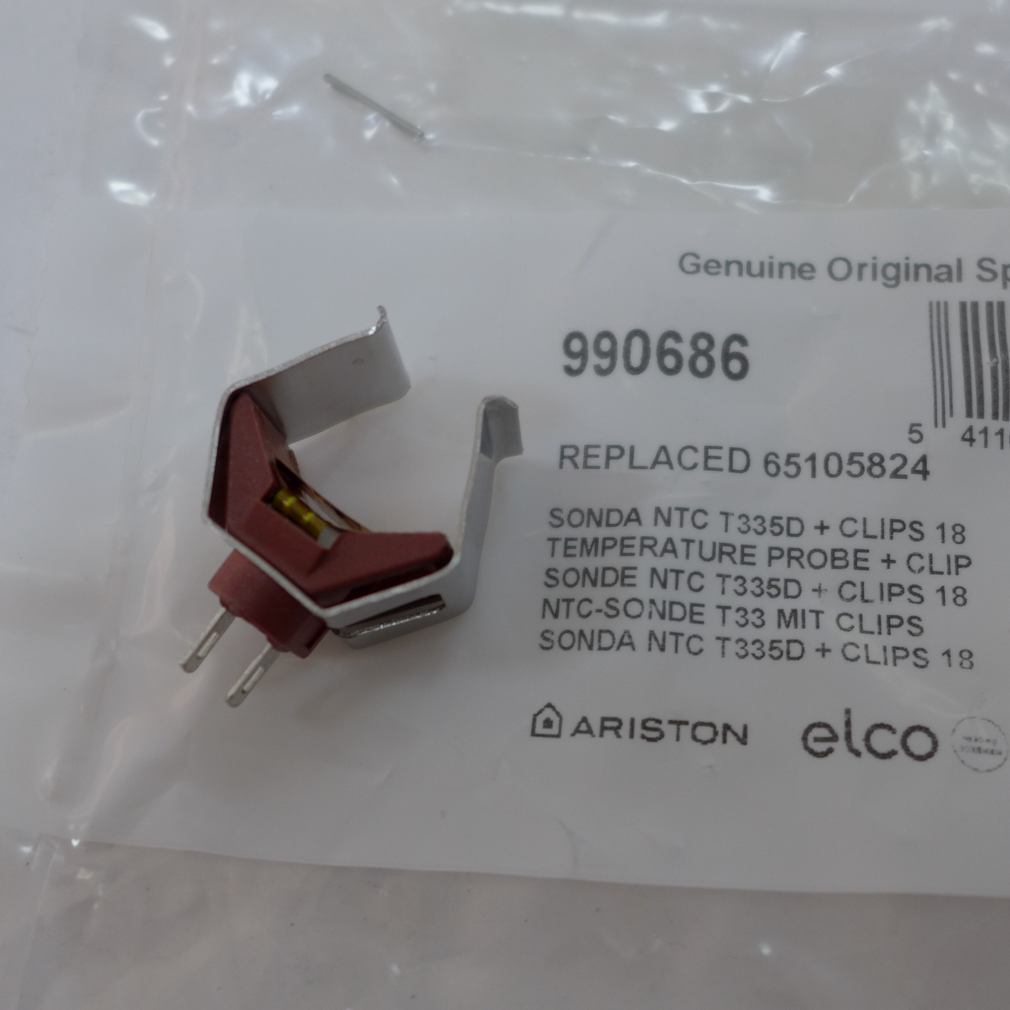Накладной температурный датчик для котлов Ariston UNO 24 MI, BS 24, CLAS (SYSTEM) 15-32, GENUS 24-36, EGIS 24.