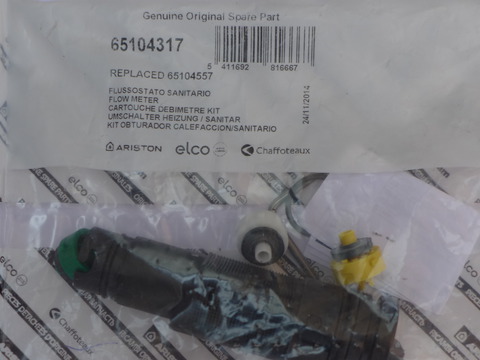 Датчик потока горячей воды для котлов Ariston: GENUS 24/28/35/36; CLAS (SYSTEM) 24/28/32; EGIS 24; BS (II)15/24; EGIS PLUS 24; MATIS 24; CLAS EVO (SYSTEM) 24/28/32; GENUS EVO 24/30/35