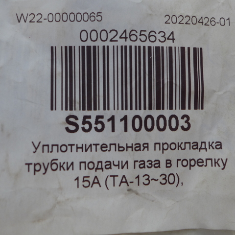 S551100003 Прокладка уплотнительная трубки подачи газа в горелку Kiturami World Alpha 10-35 / S 13-35 / C 13-35 / С 24-35H