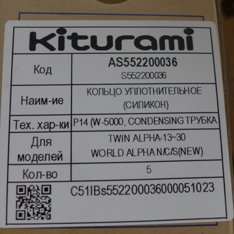 S552200036 Прокладка уплотнительная трубки ГВС Kiturami World Alpha 10-35 / S 13-35 / C 13-35 / С 24-35